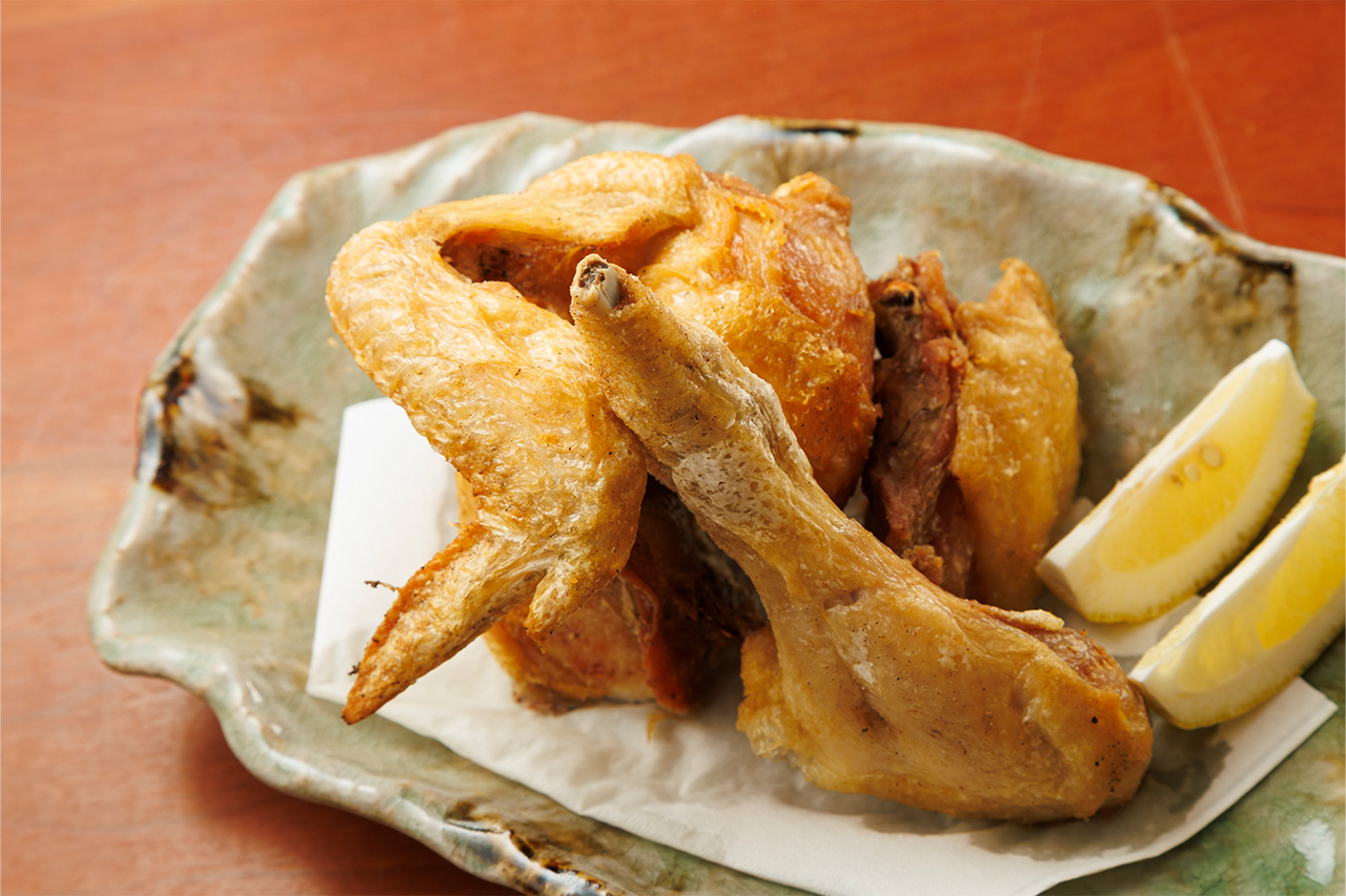 また「ひな鶏の半身揚げ」(1700円/税込)は、高温でじっくり素揚げした鶏をこだわりの塩で味付け。シンプルだけど滋味深い味わいで、こちらもディナータイムの人気メニューです。